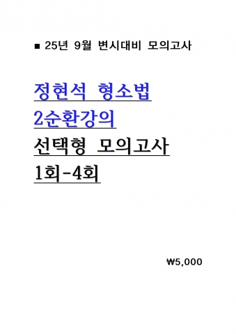 [º¯È£»ç ½ÃÇè] 2025 Á¤Çö¼® Çü¼Ò¹ý 2¼øÈ¯°ÀÇ ¼±ÅÃÇü Áøµµº° ¸ðÀǰí»ç 1ȸ-4ȸ = [A4Á¦º»]