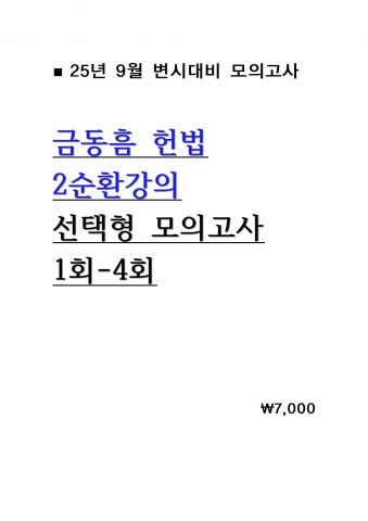 [º¯È£»ç ½ÃÇè] 2025 ±Ýµ¿Èì Çå¹ý 2¼øÈ¯°ÀÇ ¼±ÅÃÇü ¸ðÀǰí»ç 1ȸ-4ȸ = [A4Á¦º»]