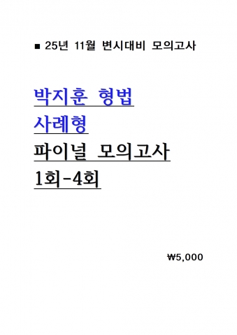 [º¯È£»ç ½ÃÇè] 2025 ¹ÚÁöÈÆ Çü¹ý »ç·ÊÇü ÆÄÀ̳Π¸ðÀǰí»ç 1ȸ-4ȸ = [A4Á¦º»]
