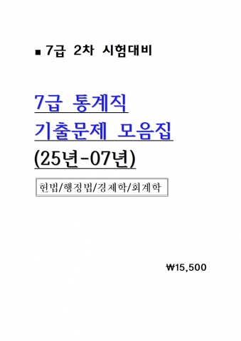 [7±Þ 2Â÷´ëºñ] 2025 7±Þ Åë°èÁ÷ ±âÃâ¹®Á¦ ¸ðÀ½Áý = 25³â-07³â [A4Á¦º»]