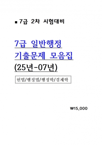 [7±Þ 2Â÷´ëºñ] 2025 7±Þ ÀϹÝÇàÁ¤ ±âÃâ¹®Á¦ ¸ðÀ½Áý = 25³â-07³â [A4Á¦º»]