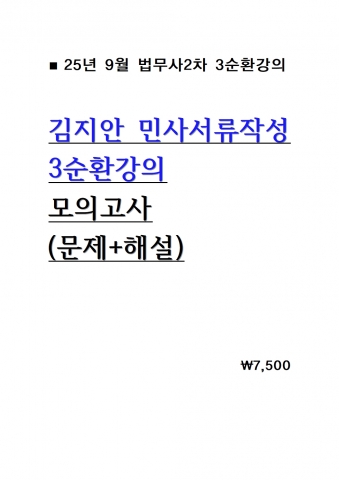 [¹ý¹«»ç 2Â÷] 2025 ±èÁö¾È ¹Î»ç¼­·ùÀÛ¼º 3¼øÈ¯°­ÀÇ ¸ðÀǰí»ç = ¹®Á¦+ÇØ¼³