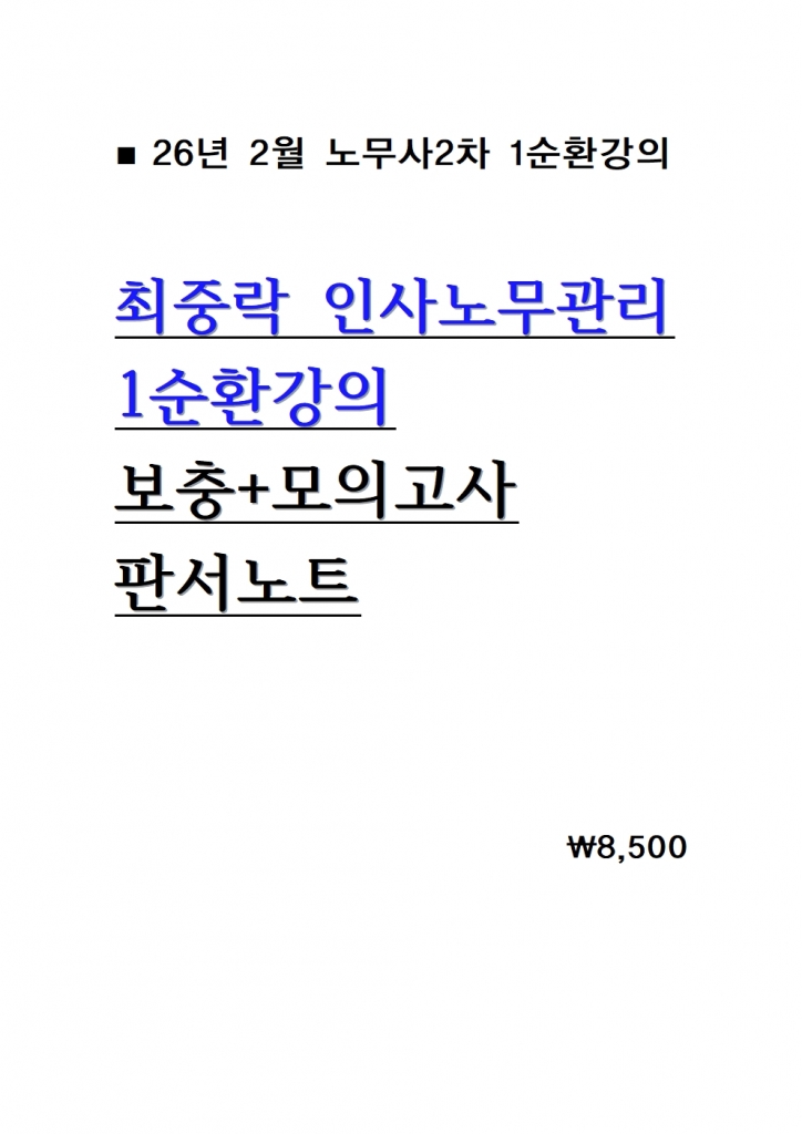 - 2026 Á¤¿ë¼ö ³ëµ¿°æÁ¦ÇÐ ¿¹ºñ¼øÈ¯°À¸ ¸ðÀǰí»ç = ¹®Á¦+ÃÖ°í´ä¾È ±¸¼º