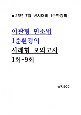 [º¯È£»ç ½ÃÇè] 25³â 7¿ù À̰üÇü ¹Î¼Ò¹ý 1¼øÈ¯°ÀÇ »ç·ÊÇü ¸ðÀǰí»ç = A4Á¦º»