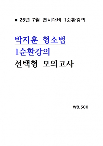 [º¯È£»ç ½ÃÇè] 25³â 7¿ù ¹ÚÁöÈÆ Çü¼Ò¹ý 1¼øÈ¯°ÀÇ ¼±ÅÃÇü ¸ðÀǰí»ç = A4Á¦º»