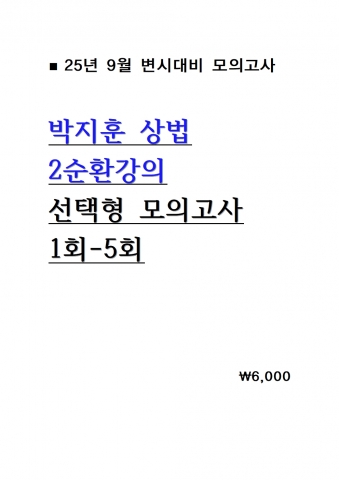 [º¯È£»ç ½ÃÇè] 2025 ¹ÚÁöÈÆ »ó¹ý 2¼øÈ¯°ÀÇ ¼±ÅÃÇü ¸ðÀǰí»ç 1ȸ-5ȸ = [A4Á¦º»]