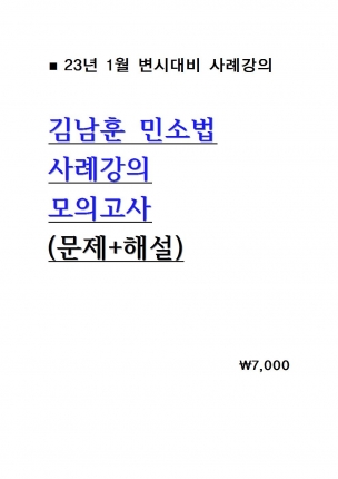 [º¯È£»ç ½ÃÇè] 2023 ±è³²ÈÆ ¹Î¼Ò¹ý »ç·Ê°ÀÇ »ç·ÊÇü ¸ðÀǰí»ç = ¹®Á¦+ÇØ¼³