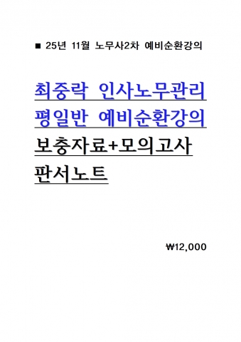 2026 ÃÖÁß¶ô Àλç³ë¹«°ü¸® ÆòÀÏ¹Ý ¿¹ºñ¼øÈ¯°ÀÇ º¸ÃæÀÚ·á ¹× ÆÇ¼³ëÆ® = 25³â 11¿ù°ÀÇ