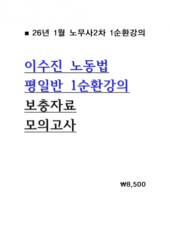 2026 À̼öÁø ³ëµ¿¹ý ÆòÀÏ¹Ý 1¼øÈ¯°ÀÇ º¸ÃæÀÚ·á ¹× ¸ðÀǰí»ç = 26³â 1¿ù°ÀÇ