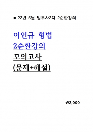 [¹ý¹«»ç 2Â÷] 2022 ÀÌÀÎ±Ô Çü¹ý 2¼øÈ¯°ÀÇ ¸ðÀǰí»ç [ÃÑ9ȸ] = ¹®Á¦+ÇØ¼³