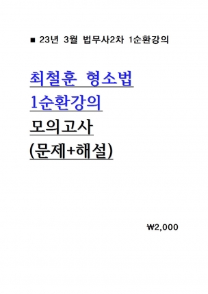 [¹ý¹«»ç 2Â÷] 2023 ÃÖÃ¶ÈÆ Çü¼Ò¹ý 1¼øÈ¯°ÀÇ ¸ðÀǰí»ç = ¹®Á¦+ÇØ¼³