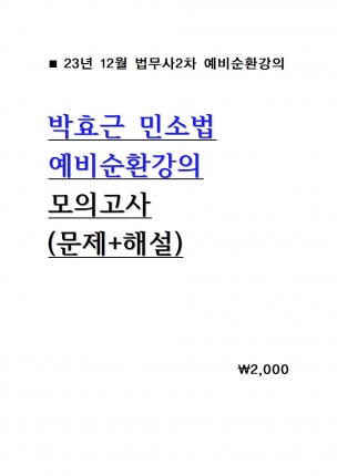 [¹ý¹«»ç 2Â÷] 2024 ¹ÚÈ¿±Ù ¹Î¼Ò¹ý ¿¹ºñ¼øÈ¯°ÀÇ ¸ðÀǰí»ç = ¹®Á¦+ÇØ¼³